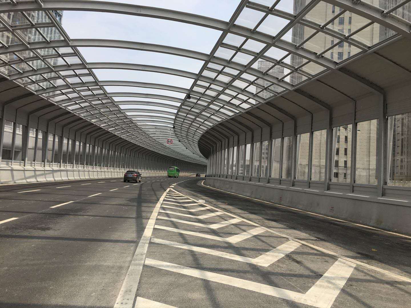 在高架的南側是中醫院東院區,所以對于聲環境的要求是比較高的。“綜合考慮我們在一段設置了全封閉式的聲屏障設備,能夠最大限度的降低車輛行駛帶來的噪音,給附近的住院患者提供一個安靜、良好的就醫環境。