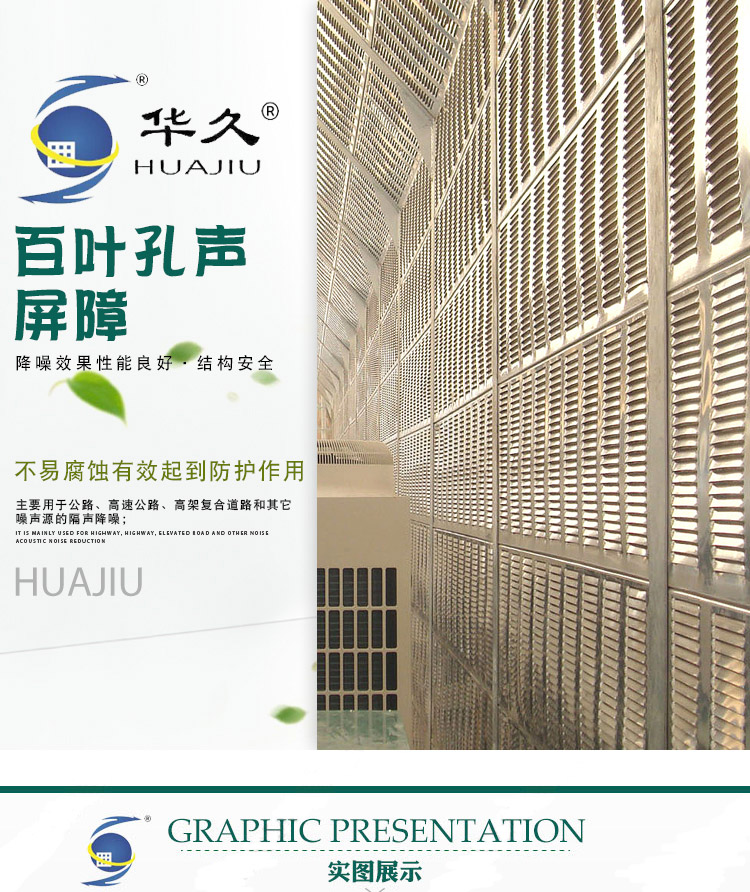 百葉孔聲屏障規(guī)格:常規(guī)1960*500*100,2460*500*100 可根據(jù)客戶要求定制尺寸;